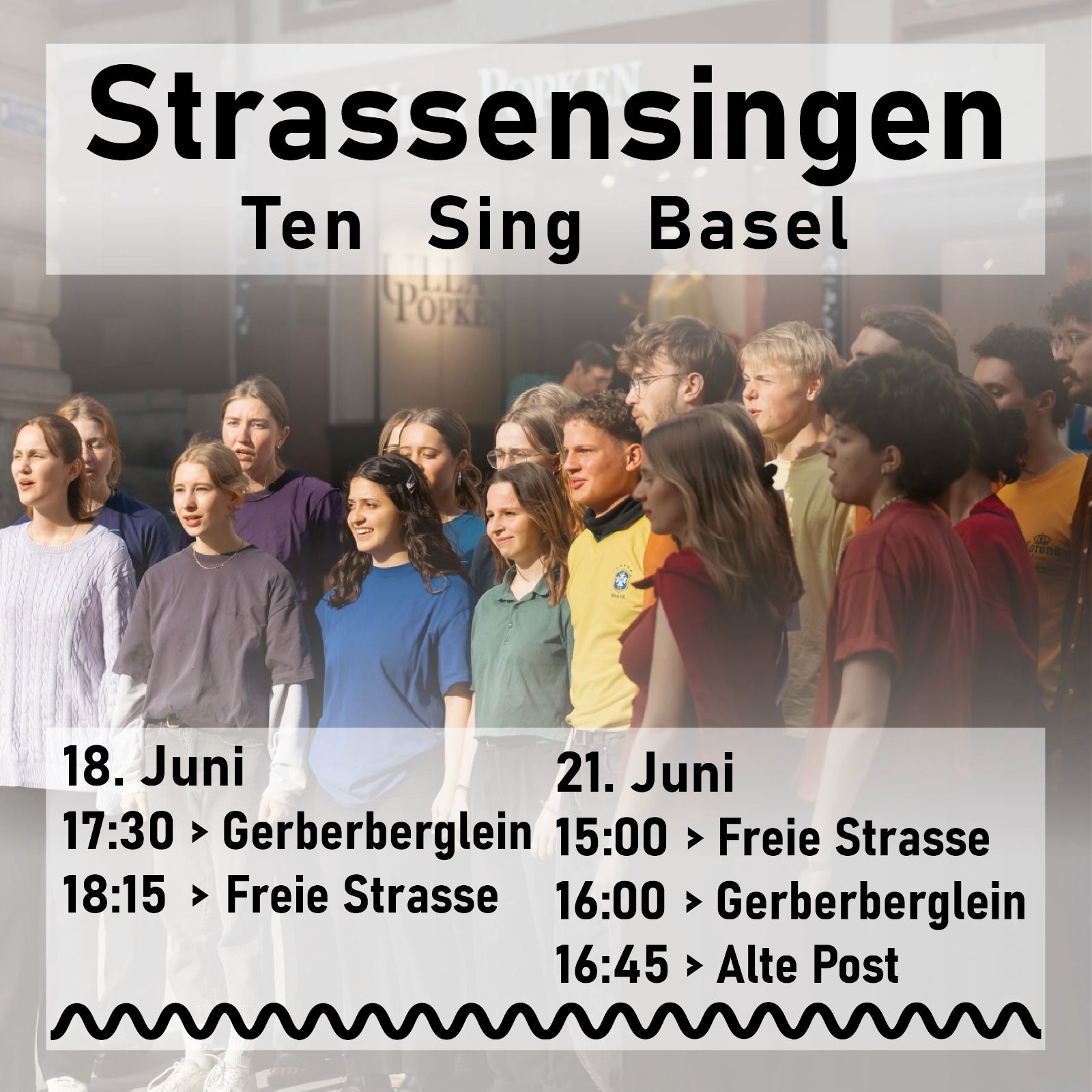 Veröffentlicht am Juni 11, 2025Juni 11, 2025 von tensingbaselUnser Strassensingen 🎶 Nächste Woche ist es wieder so weit!Am Mittwoch und Samstag bringen wir die Straßen von Basel zum Klingen – mit Musik für Jung und Alt, zum Mitsingen, Genießen und Entdecken. Wir freuen uns riesig, wenn du vorbeischaust! 💛 Teilen mit: Auf X teilen (Wird in neuem Fenster geöffnet) X Auf Facebook teilen (Wird in neuem Fenster geöffnet) Facebook Gefällt mir Wird geladen … Ähnliche Beiträge